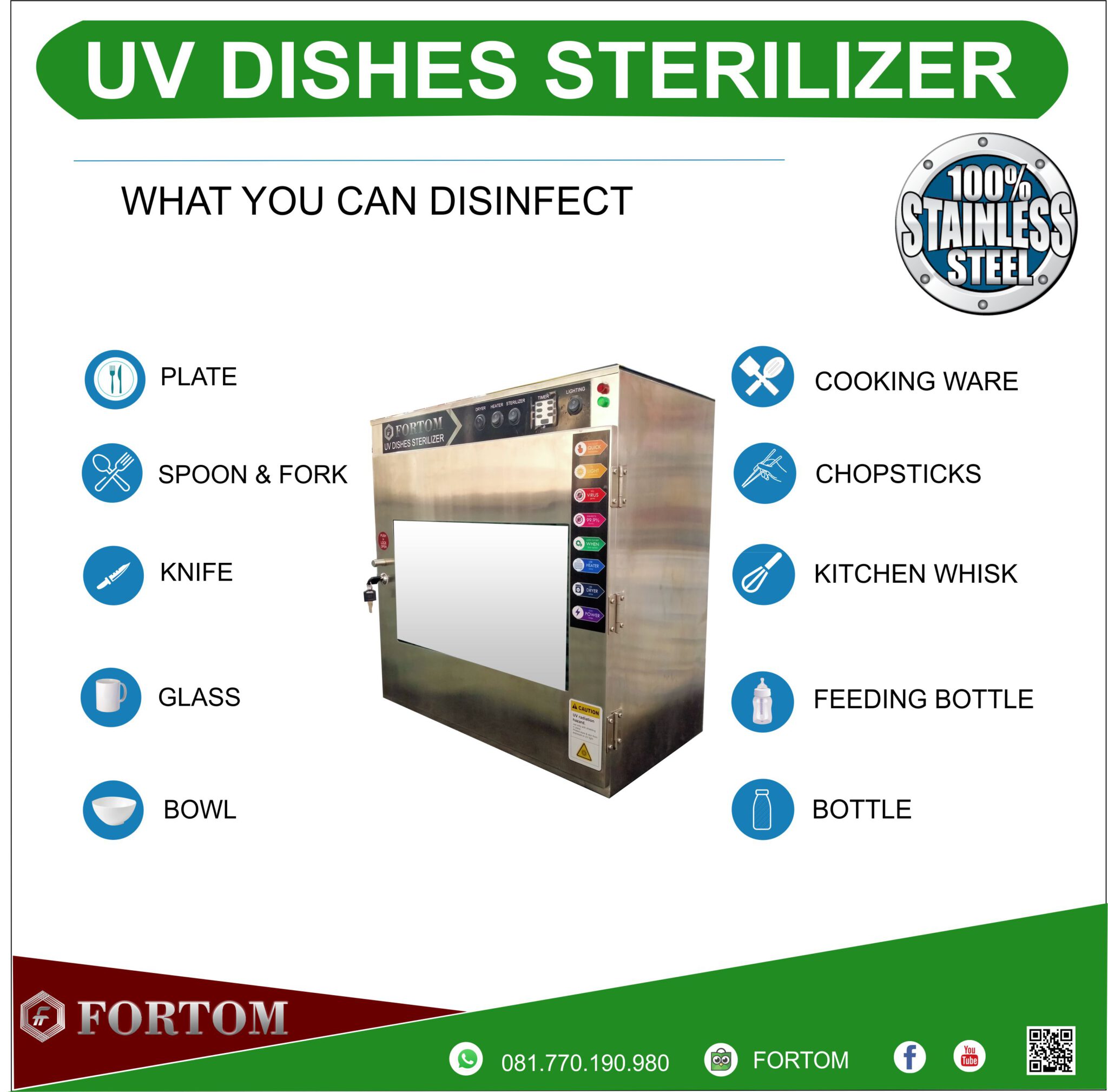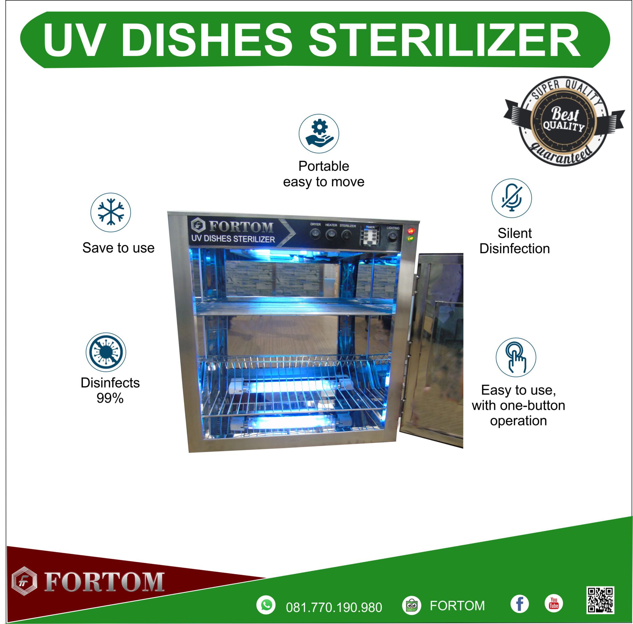 FORTIS UVC Sterilizer Box adalah box yang dilengkapi lampu UVC guna mensterilkan barang – barang disekeliling kita seperti: peralatan makan, alat kesehatan, masker, dokumen, paket kiriman, dompet, uang dan banyak lainnya.
